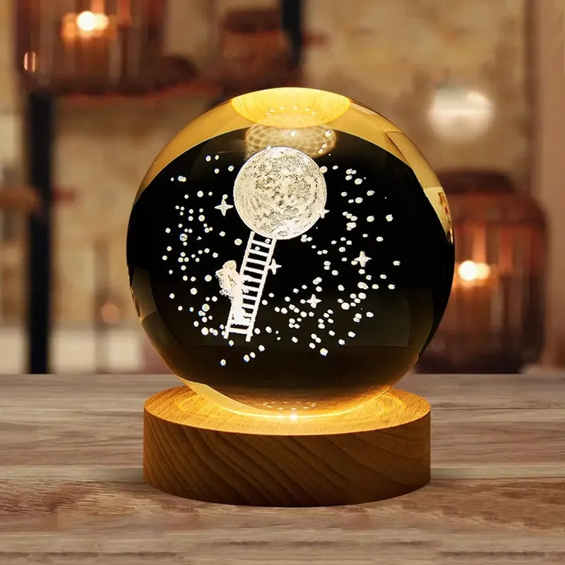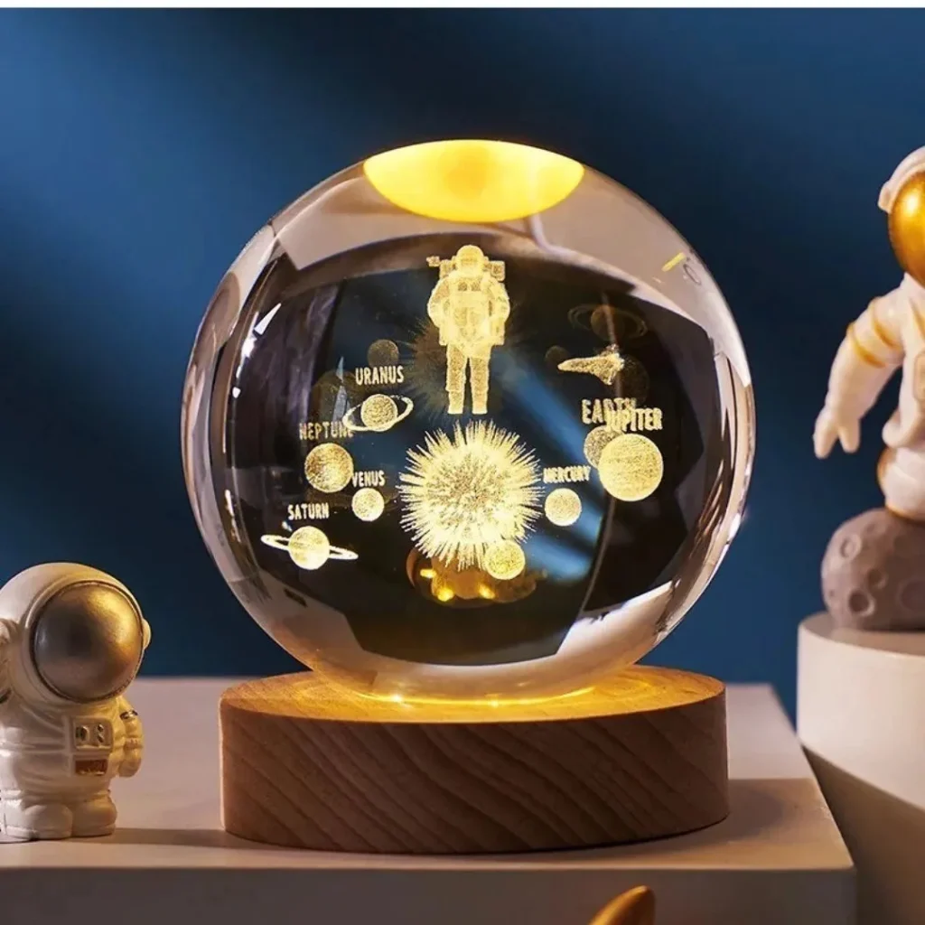 چراغ خواب گوی کریستالی طرح فضانورد و سیاره سایز 6